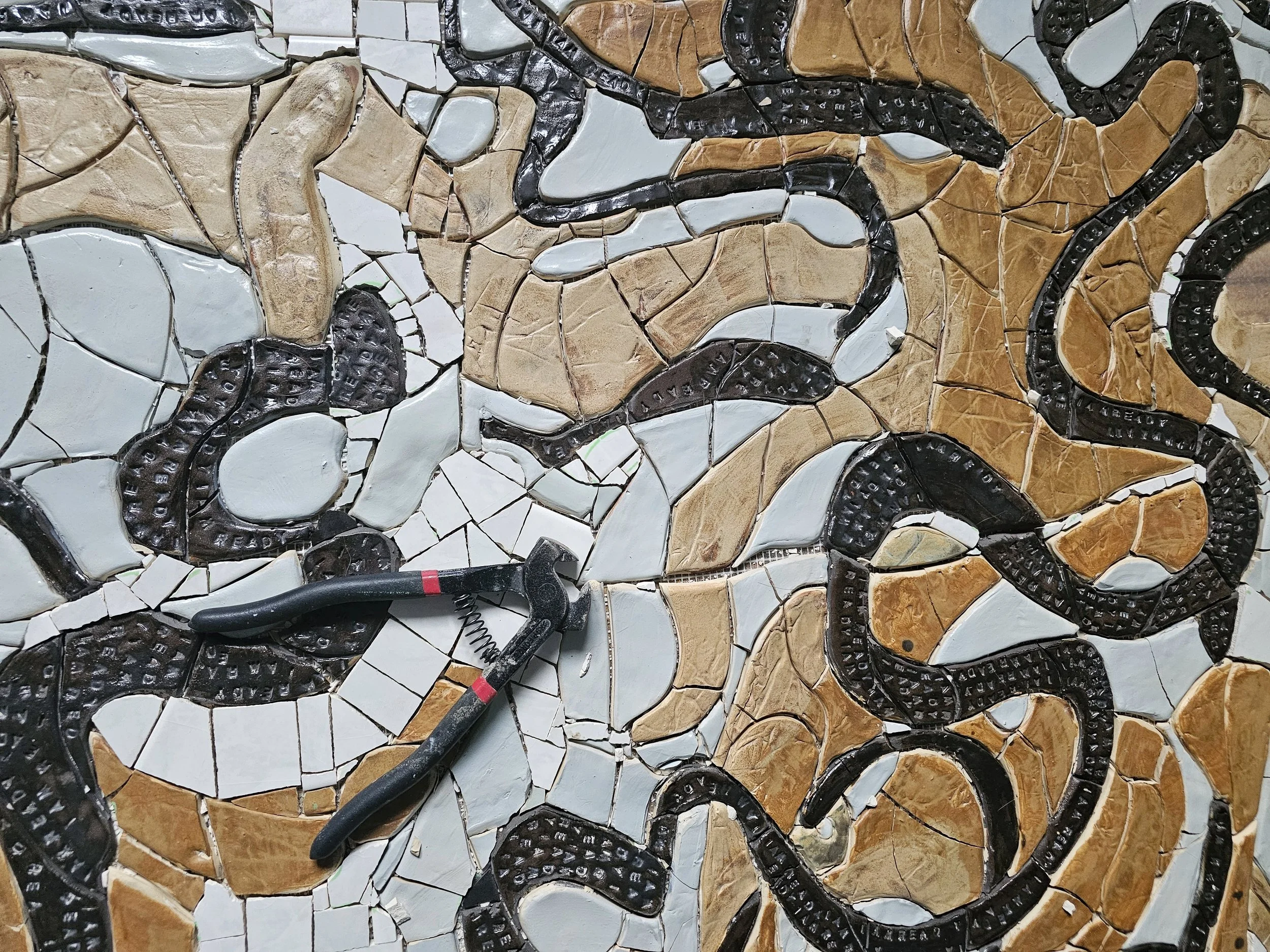 “I enjoy working with things that already have a life - found objects, scraps of fabric, broken tiles. They’re already telling a story, and I invite them into a new one.”